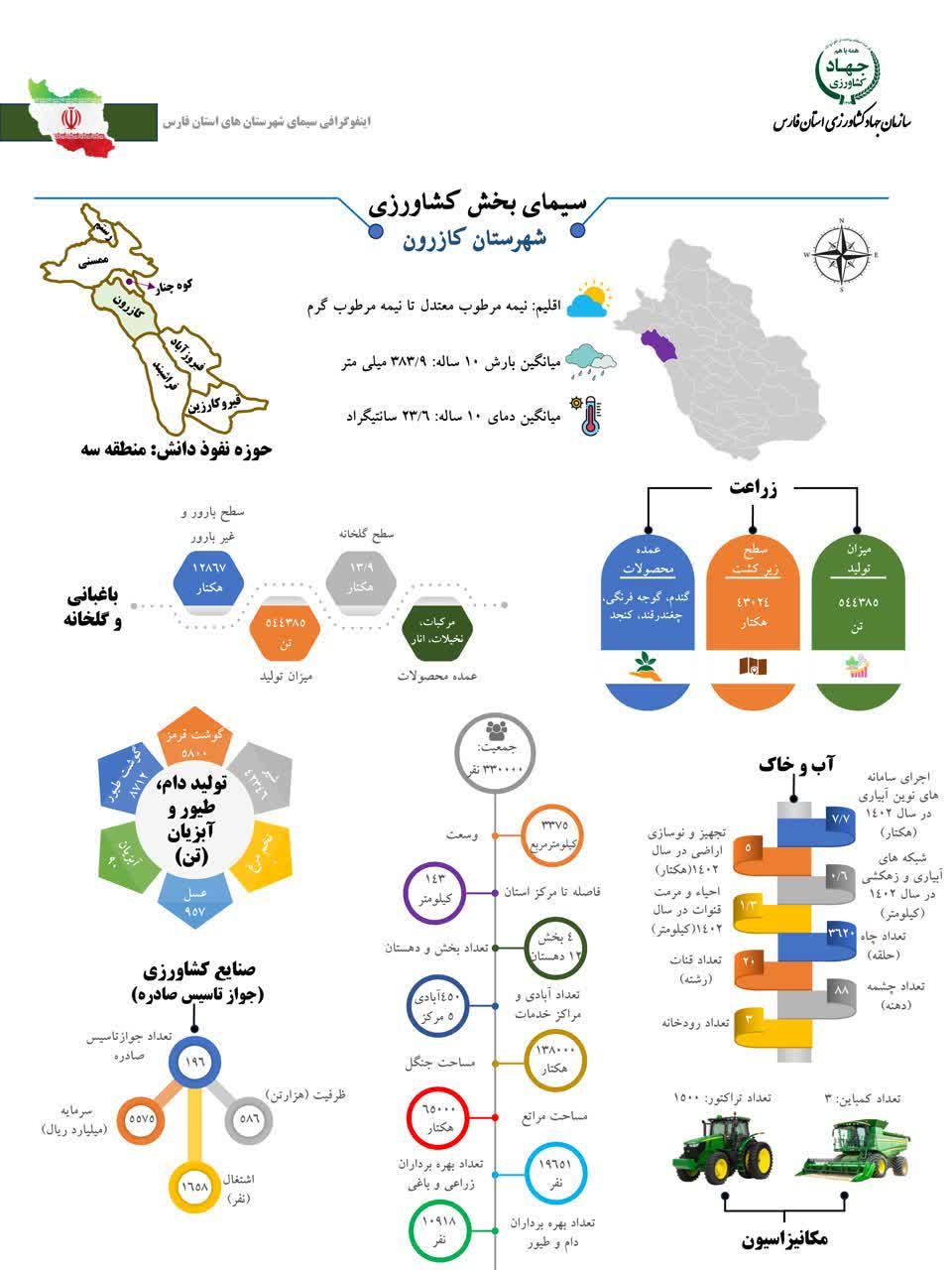 اینفوگرافیک سیمای بخش کشاورزی شهرستان کازرون
