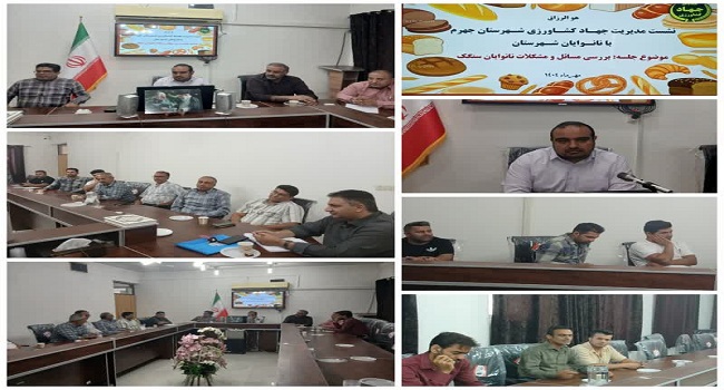 نشست مدیریت جهاد کشاورزی شهرستان جهرم با رئیس اتحادیه نانوایان و جمعی از خبازان با محوریت بررسی چالشها و مشکلات نانوایی های سنگک