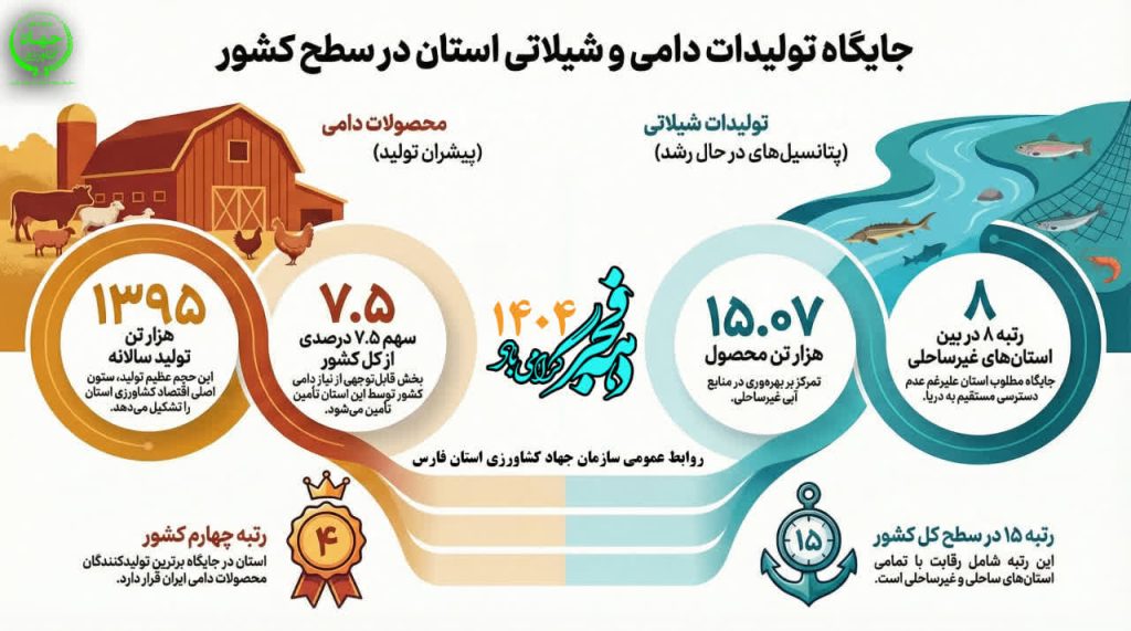 جایگاه تولیدات دامی و شیلاتی استان فارس در سطح کشور