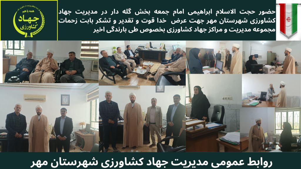دیدار سرپرست مدیریت جهاد کشاورزی به همراه جمعی از همکاران با بشارت نیا فرمانده بسیج سپاه شهرستان مهر به مناسبت هفته بسیج