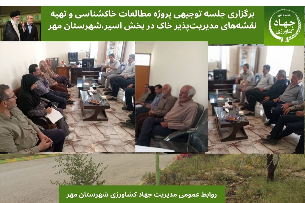 برگزاری جلسه توجیهی پروژه مطالعات خاکشناسی و تهیه نقشههای مدیریتپذیر خاک در بخش اسیر،شهرستان مهر