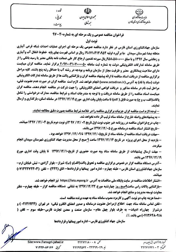 آدرس : فارس - شیراز - بلوار آزادی - نبش خیابان ارم - سازمان جهاد کشاورزی استان فارس