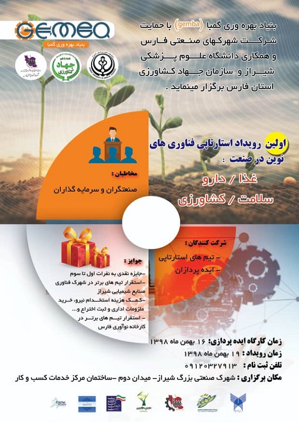 اولین رویداد استارتاپی فناوری های نوین در صنعت: غذا / دارو / سلامت / کشاورزی