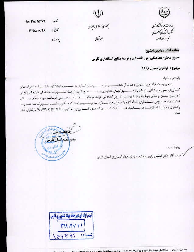 آدرس : فارس - شیراز - بلوار آزادی - نبش خیابان ارم - سازمان جهاد کشاورزی استان فارس