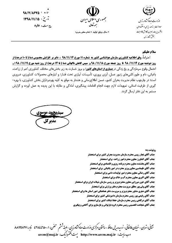 آدرس : فارس - شیراز - بلوار آزادی - نبش خیابان ارم - سازمان جهاد کشاورزی استان فارس
