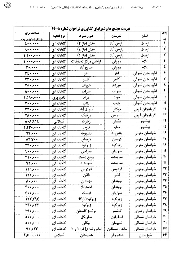 دعوت از متقاضیان سرمایه گذاری در مجتمع ها / شهرک های کشاورزی ( گلخانه ای ،دامپروری و شیلاتی )